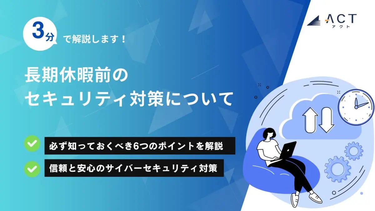 今年30周年を迎え、サイバーセキュリティ事業などを行う株式会社アクト(本社:東京都文京区、代表取締役CEO 小林 智彦 、以下 アクト)は【3分で解説!長期休暇前のセキュリティ対策について】のホワイトペーパーを公開しました。