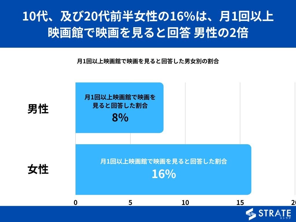 【10代、及び20代前半女性の16%は、月1回以上映画館で映画を見ると回答 男性の2倍】