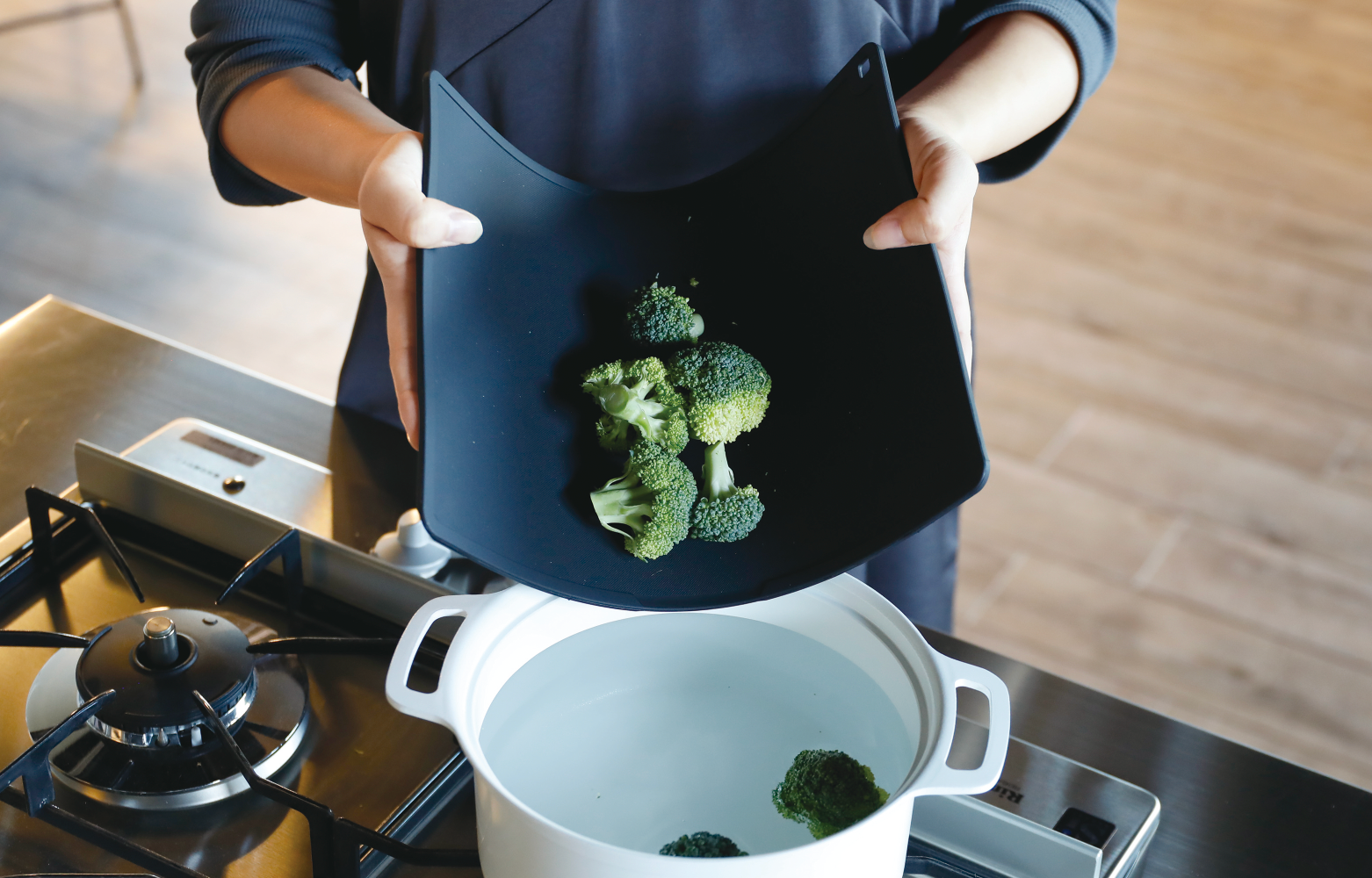 折り曲げられるので、食材を鍋やフライパンにそのまま入れることが出来きます。