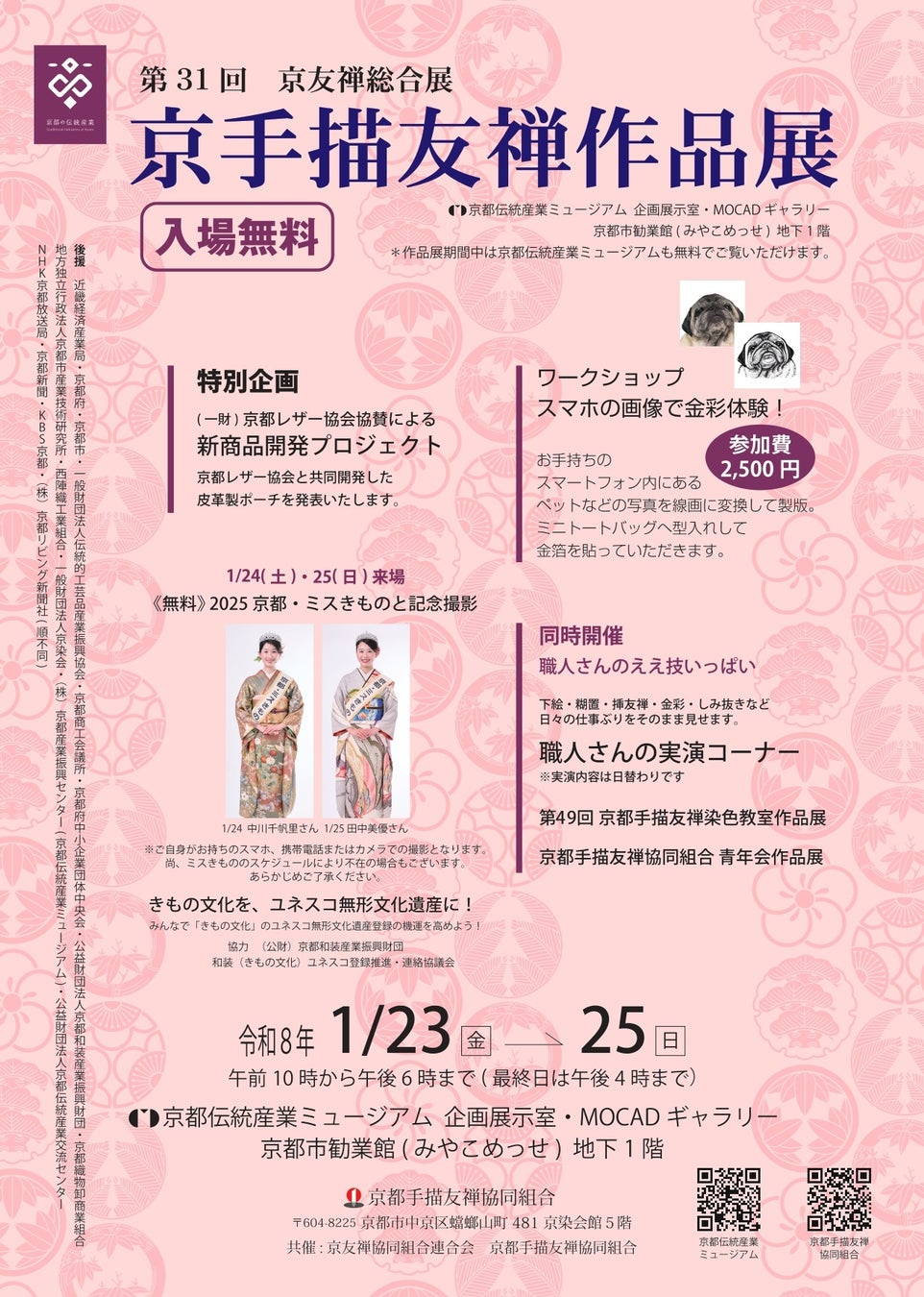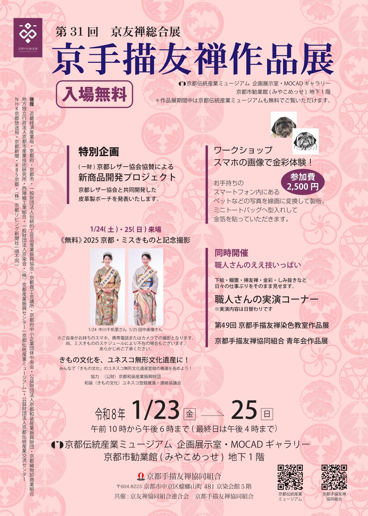 京都伝統産業ミュージアム(京都市左京区)では、2026年1月23日(金)から25日(日)までの3日間、京都を代表する伝統染色技法である手描友禅の魅力を発信する「第31回 京友禅総合展 京手描友禅作品展」を開催いたします。