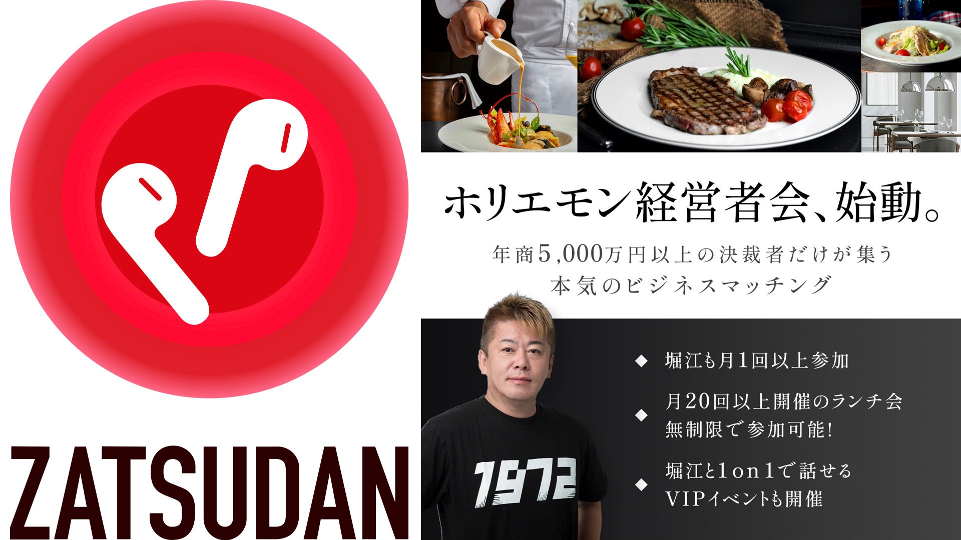 株式会社ZATSUDAN(本社:東京都渋谷区、代表取締役:関 清仁)は、テリヤキ株式会社(本社:東京都港区、代表取締役:浜崎 龍)が運営する「ホリエモン経営者会」と連携し、新たな情報発信の形としてZATSUDAN YouTubeチャンネルをアップデートいたします。