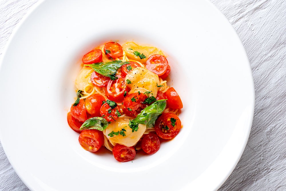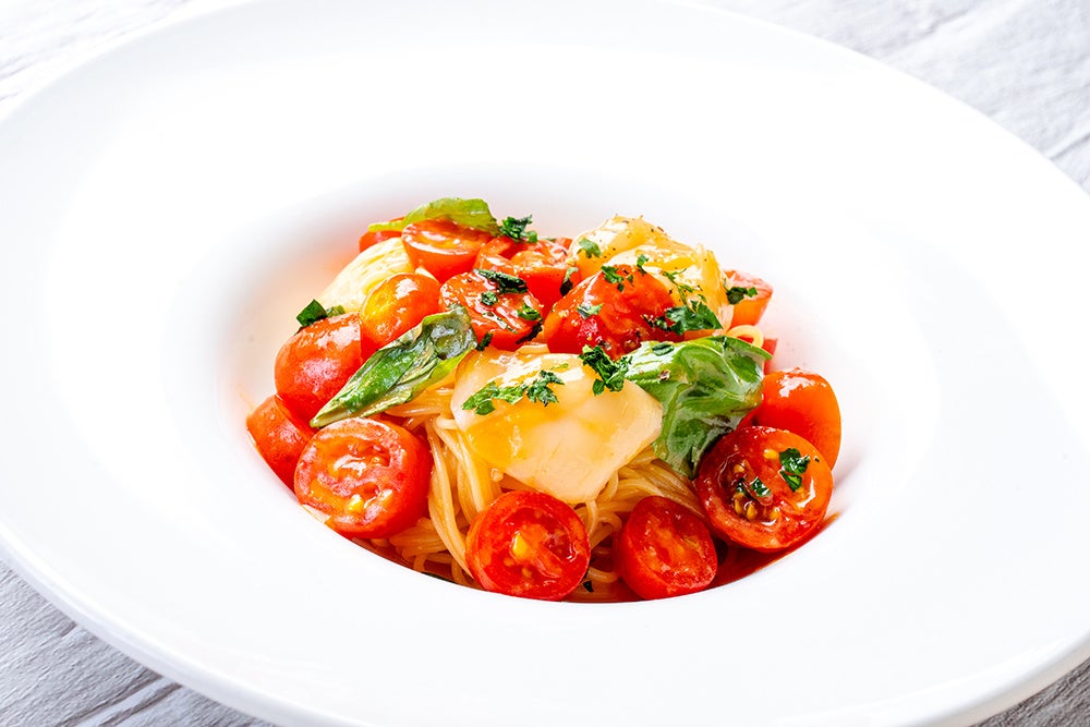 まるでフルーツのような甘さの「純あま」を使用した冷製・温製のスパゲティの2品他をぜひお楽しみください。