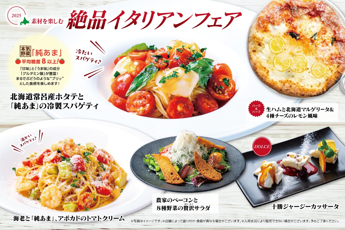 札幌を中心に東北・関東で「北海道小麦の生パスタ 麦と卵」「焼鳥ダイニング いただきコッコちゃん」など45店舗を経営する株式会社イーストン(所在地:札幌市北区、代表取締役社長:大山 泰正、以下「イーストン」)は、2025年8月20日(水)から北海道食材をメインとしたイタリア料理を楽しめる「北海道イタリアン ミアボッカ」「北海道イタリアン ミア・アンジェラ」にて北海道プレミアムミニトマト平均糖度8度以上の「純あま」を使用した冷製スパゲティ他『素材を楽しむ絶品イタリアンフェア2025』を期間限定で開催いたします。