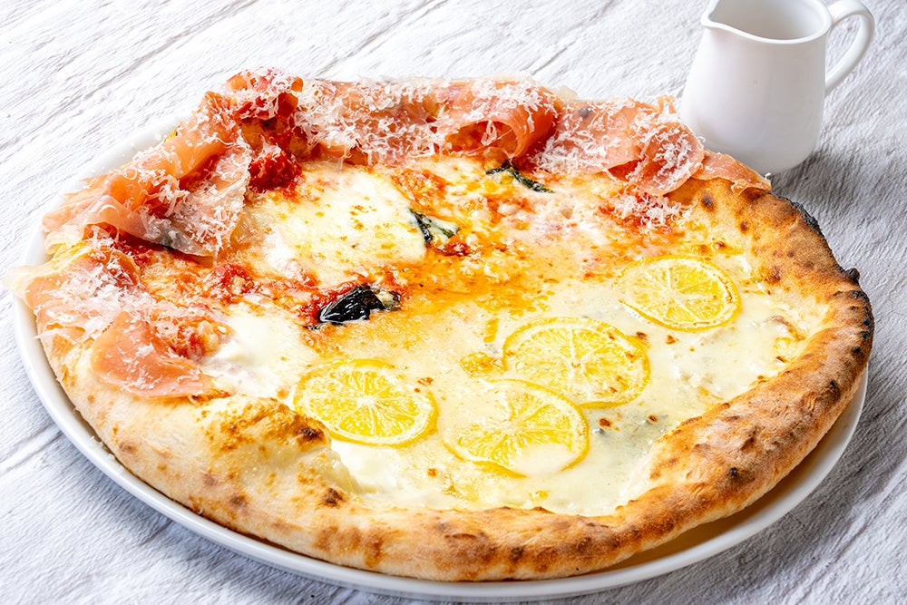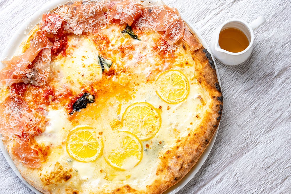 芳醇な4種チーズにレモンの香りをのせ、はちみつが味に深みを与えるピッツァ。