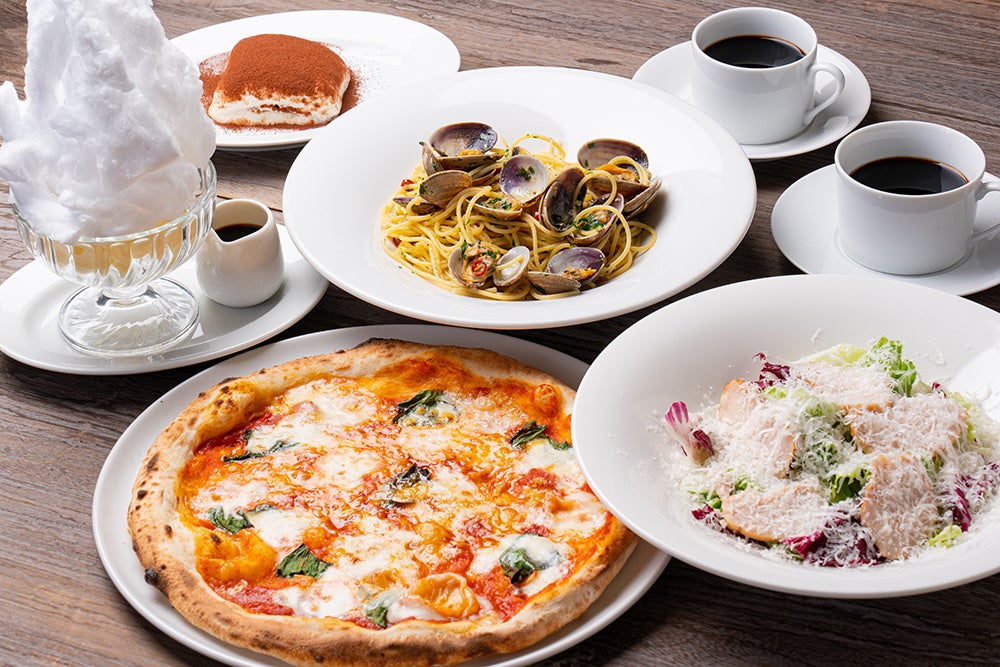 ワインとのペアリングで、豊かな味わいをお楽しみください。北海道産小麦100%のピザ生地に相性が抜群です。人気の生ハムと北海道マルゲリータとハーフ&ハーフでお楽しみいただけます。