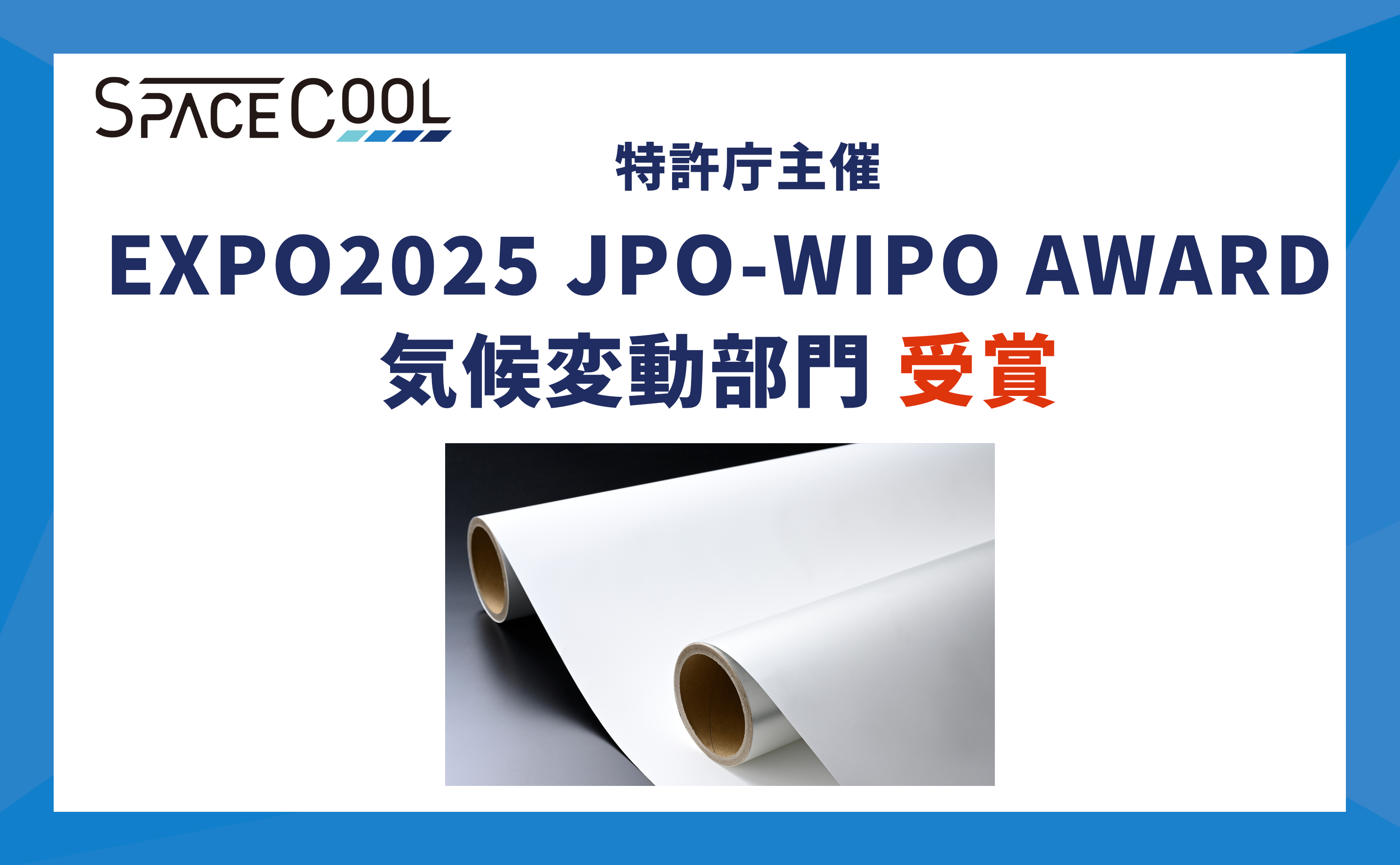 SPACECOOL株式会社(本社:東京都、代表取締役社長:末光真大、以下「当社」)は、この度、経済産業省 特許庁が主催する知財アワード「EXPO2025 JPO-WIPO AWARD」で気候変動部門を受賞しました。