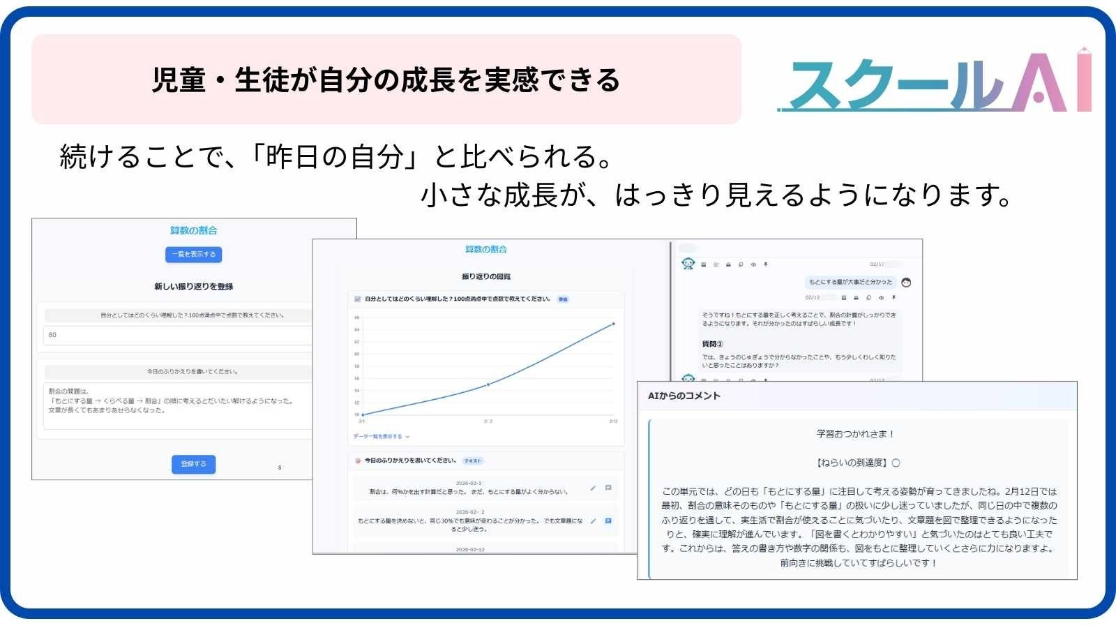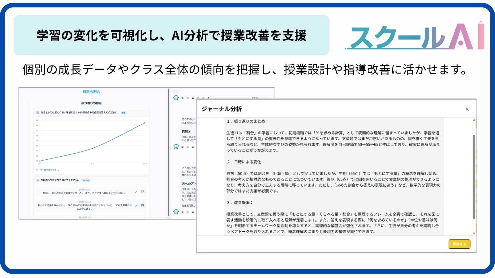 先生と生徒が“成長を共有できるジャーナル”として設計されています。
