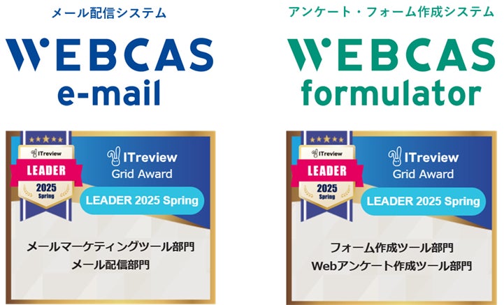 WEBCAS、「ITreview Grid Award 2025 Spring」のメールマーケティングツール部門やWebアンケート作成ツール部門などで最高位の「Leader」を受賞