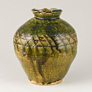 LOT.204 北大路 魯山人「織部釉檜垣文花生」