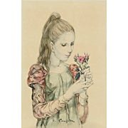 LOT.301 レオナール・フジタ「薔薇を持つ少女」
