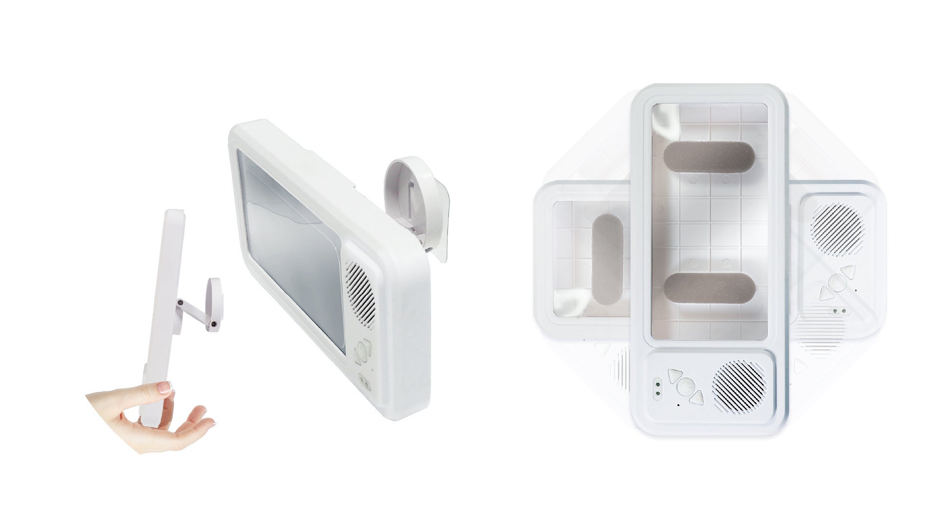 IPX4相当の防水仕様!背面の吸盤で浴室のガラスやタイルにピタッと吸着