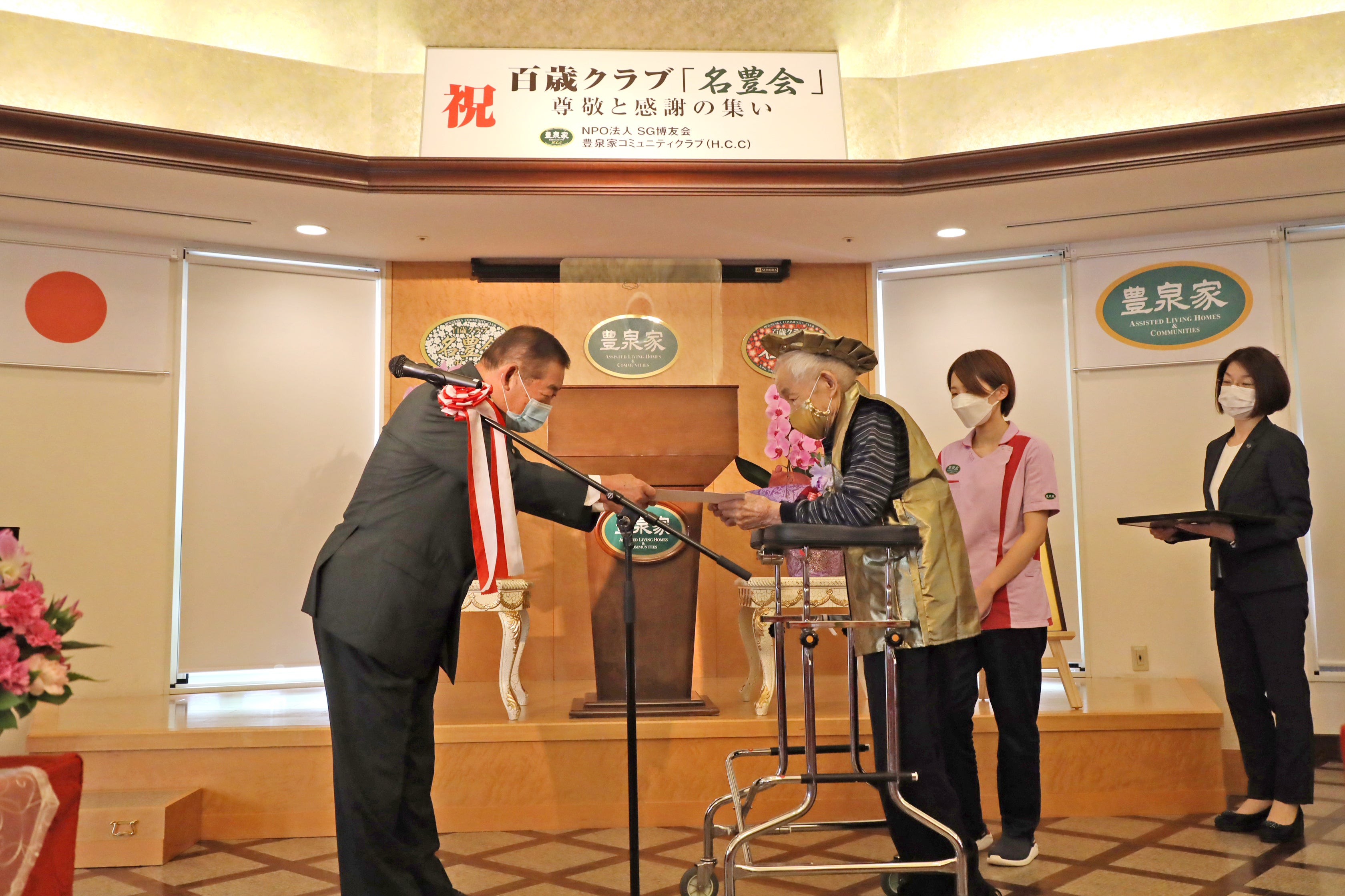 豊泉家グループでは毎年敬老の日に100歳以上のご利用者をお祝いする会を開催しております。