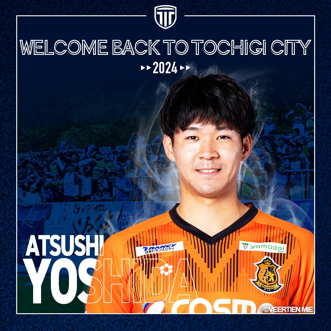 栃木シティに関わる全ての皆さま、ただいま!そしてはじめまして。ヴィアティン三重より加入することになりました、吉田篤志です。もう一度、栃木シティでプレーできる事をとても嬉しく思います。
