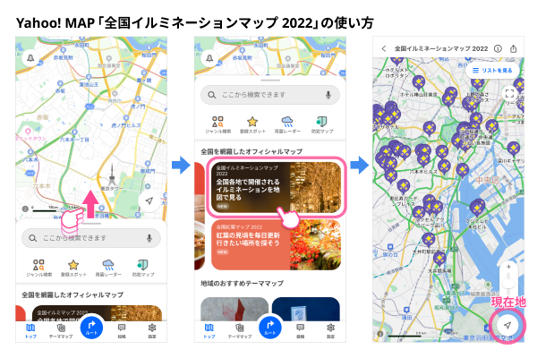 ■Yahoo! MAP「全国イルミネーションマップ 2022」の使い方