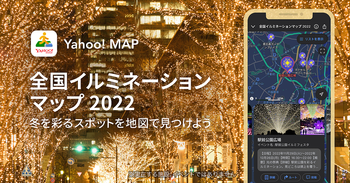 Yahoo! MAP、全国で開催されるイルミネーションの詳細が地図上で確認できる「全国イルミネーションマップ 2022」を提供開始