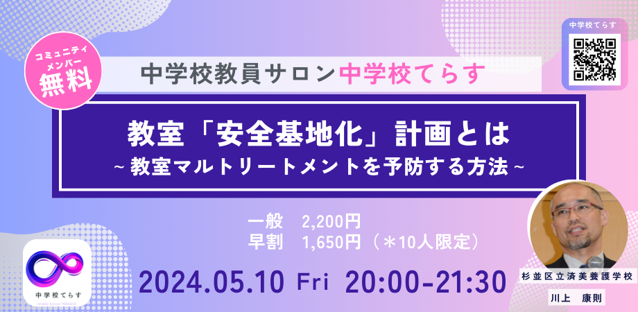 【5/10開催】教室「安全基地化」計画とは ~教室マルトリートメントを予防する方法~