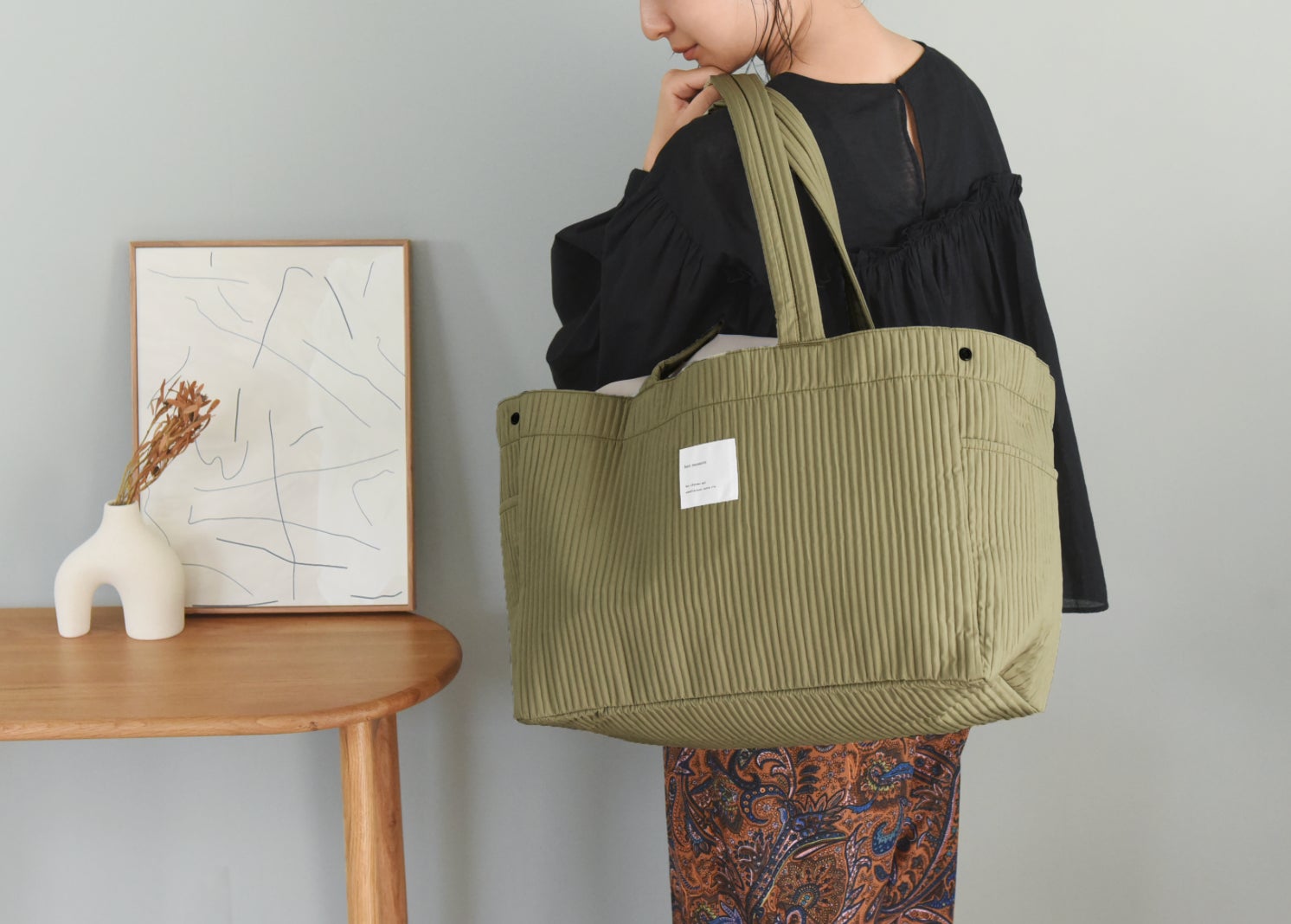 新作のストライプは凹凸感のある素材で、「いかにもエコバッグ」な雰囲気にならないのもポイント。