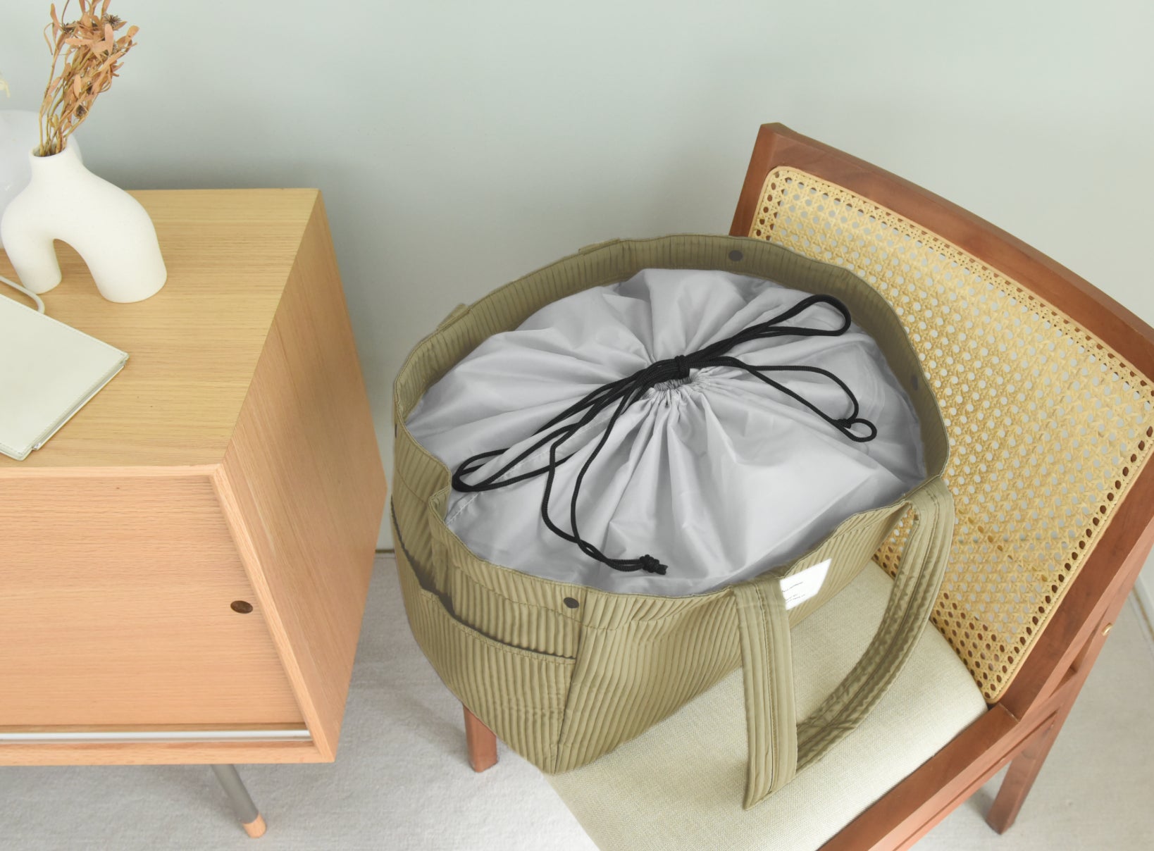 またバッグの口が巾着仕様になっており、たくさん物を詰めても溢れにくいのもポイント。