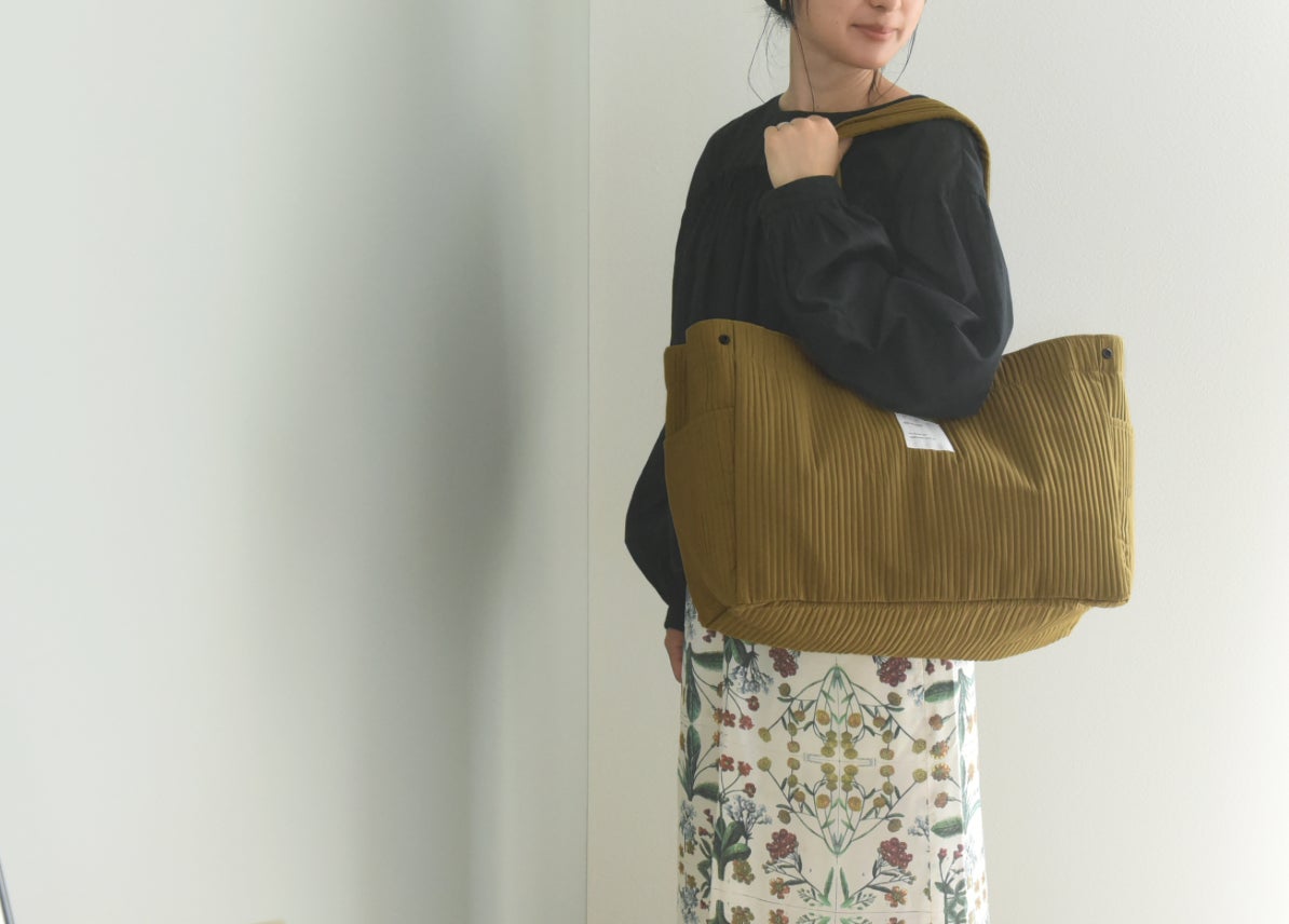 スーパーなどのご近所使いだけでなく、街歩きのサブバッグとしても使いやすく仕上げています。