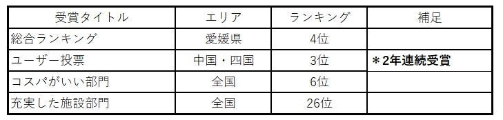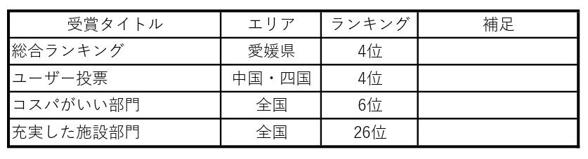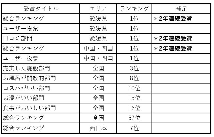 「伊予の湯治場 喜助の湯」受賞一覧 *全12部門
