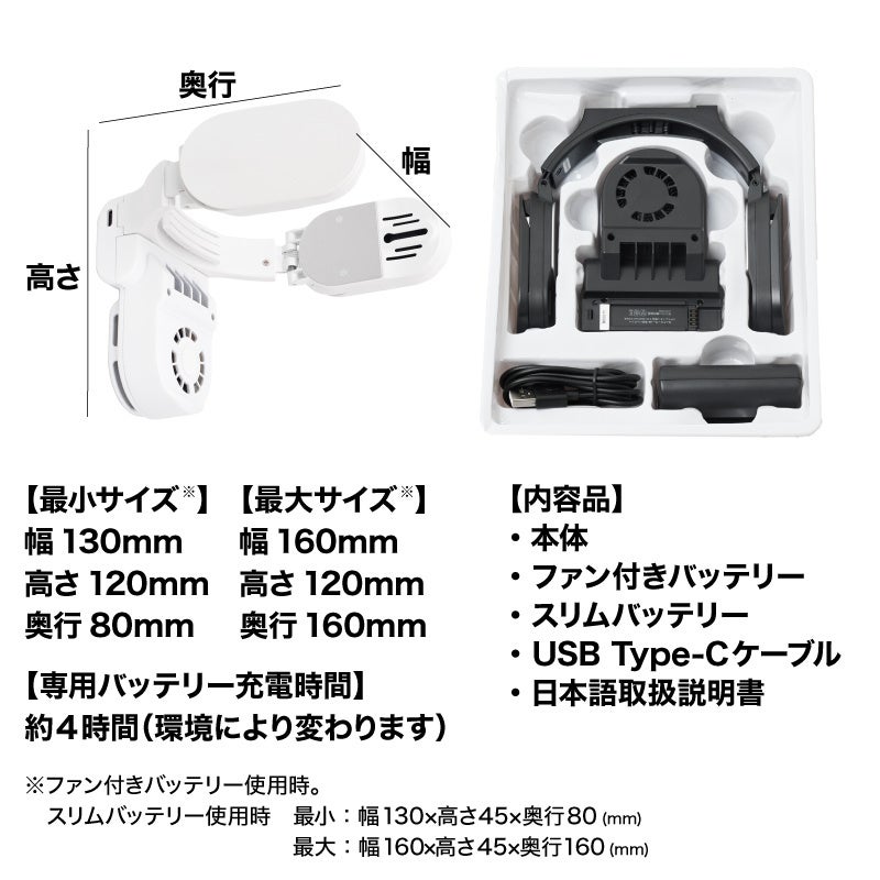 <仕様>・サイズ/【ファン付きバッテリー装着時】最小:幅130×高さ120×奥行80(mm)