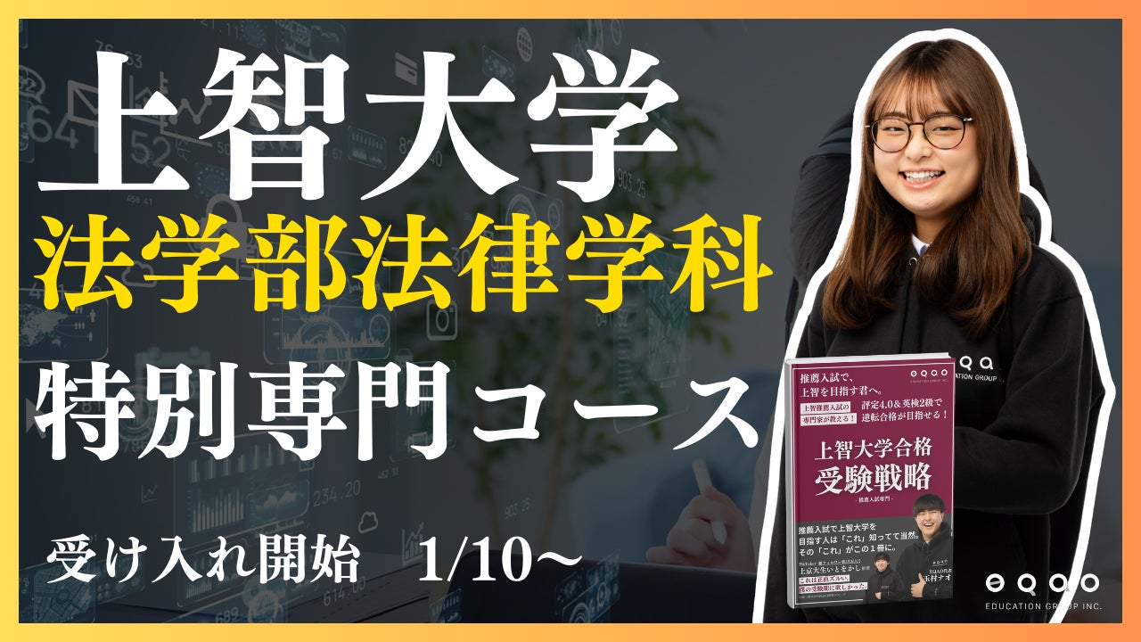 上智大学法学部の驚異的な合格率を誇るEQAOから、上智大学法学部法律学科専門コースをリリースします!現役の上智大学法学部法律学科生講師のマンツーマン授業を受けられるEQAOで早めの対策をしましょう。