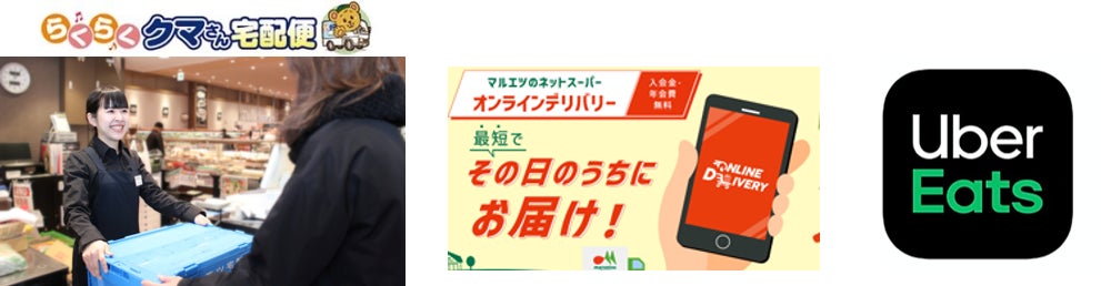 お客さまのお困りごとに役立つサービスをご用意しております。たくさんのお買い物に便利な「らくらくクマさん宅配便」サービスでは、店内でお買上げいただいた商品を3時間以内にご自宅まで配達いたします。あわせてネットスーパー「オンラインデリバリー」や即時配達サービスUber Eatsに対応し、ご自宅でもマルエツのお買い物をお楽しみいただけます。