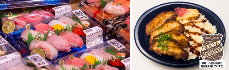 フィッシュデリ・ミートデリのコーナーでは、地魚の握り寿司や「鎌倉ハムの焼き豚丼」など、地場食材を活用した当店ならではのメニューをご用意いたします。