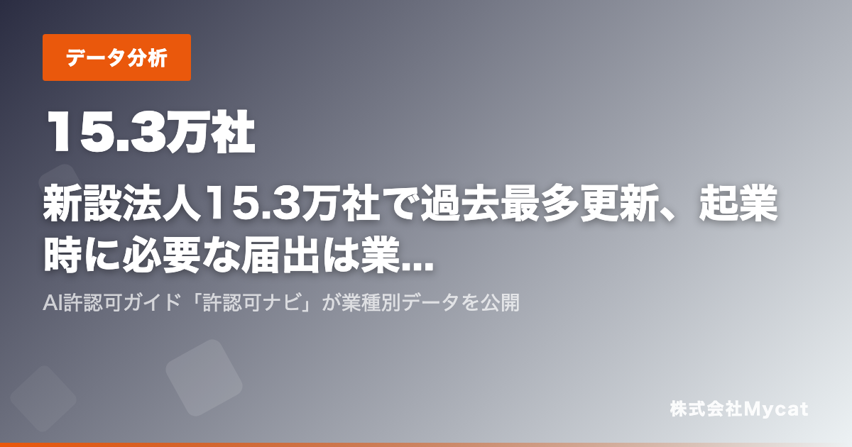 株式会社Mycat(本社:東京都目黒区)は、業種別の許認可・届出をAIが自動判定するサービス「許認可ナビ」(https://kyoninka.xyz)の提供にあたり、起業に関する公開データの分析レポートを公開いたします。
