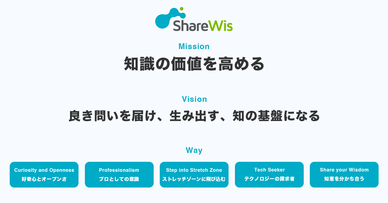 ミッション・ビジョン・ウェイの紹介ページ: https://company.share-wis.com/about/#mission