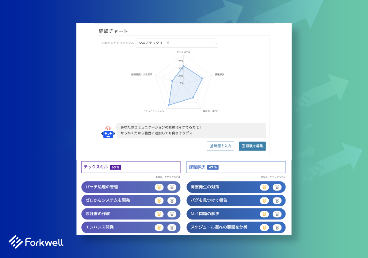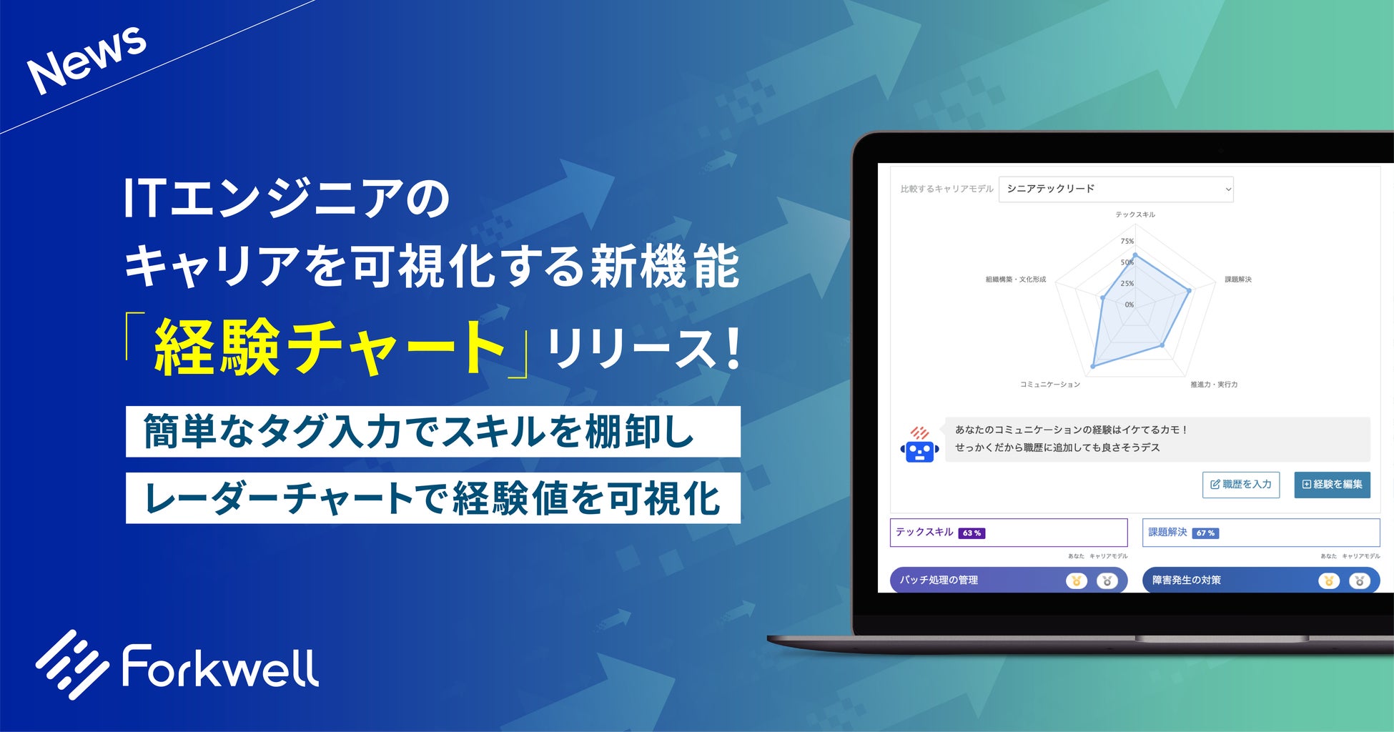 ITエンジニアのキャリアに本気で向き合う転職サイト「Forkwell(フォークウェル)」がエンジニアのキャリアを可視化する新機能「経験チャート」を提供開始