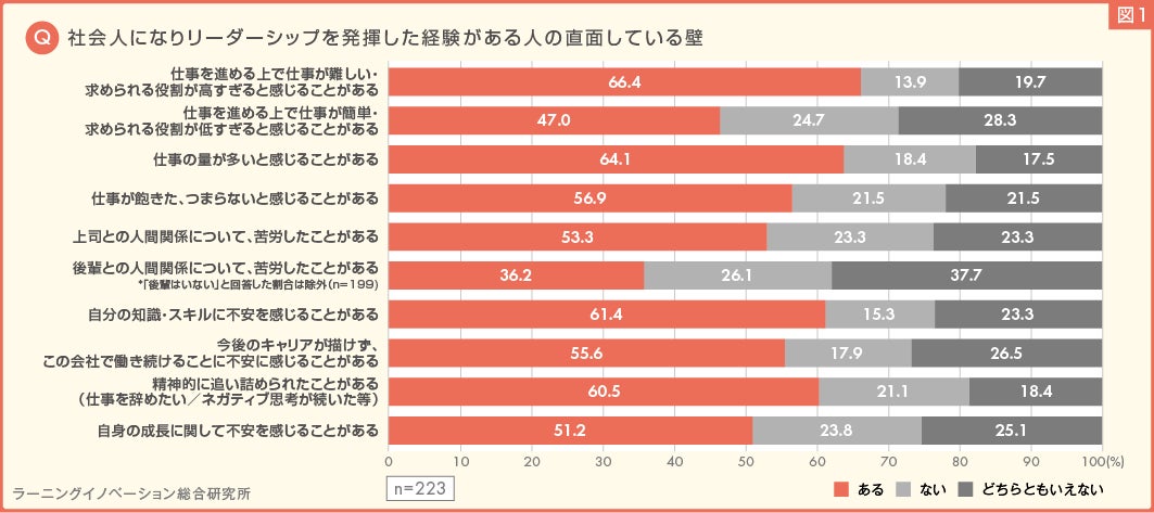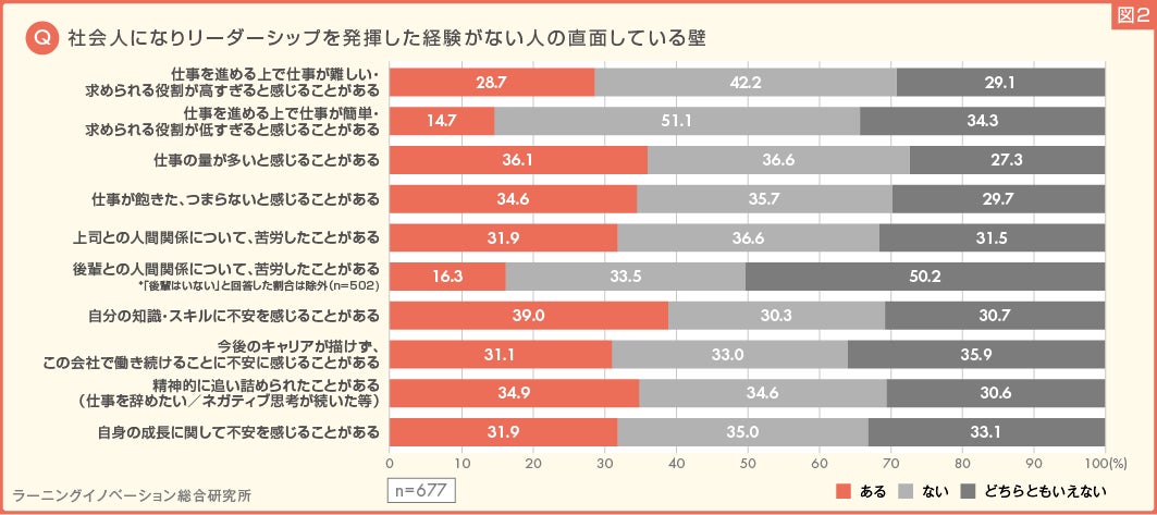 *本調査を引用される際は【ラーニングイノベーション総合研究所「若手社員の意識調査(リーダーシップ経験と直面する壁)」】と明記ください