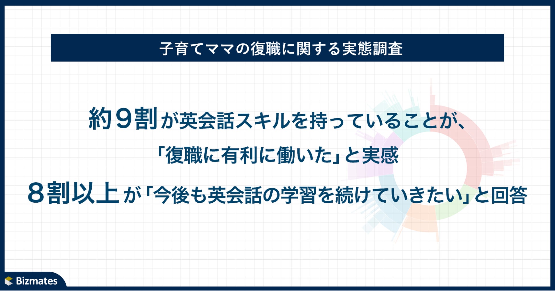 今回の調査では、復職において英会話スキルが大きなアドバンテージとなることが明らかになりました。出産後のキャリアを考える女性にとって、英会話スキルを身につけることは、多様な働き方やキャリアアップに繋がるのではないでしょうか。