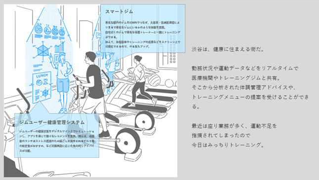 IOWNサービスの大容量・超高速通信を活用することで、拠点間を大きなスクリーンで繋ぐことが可能。こうした技術を活用したスマートジムなど、渋谷での生活を便利で充実したものにする次世代サービスを、身近な施設で気軽に体験することができる。