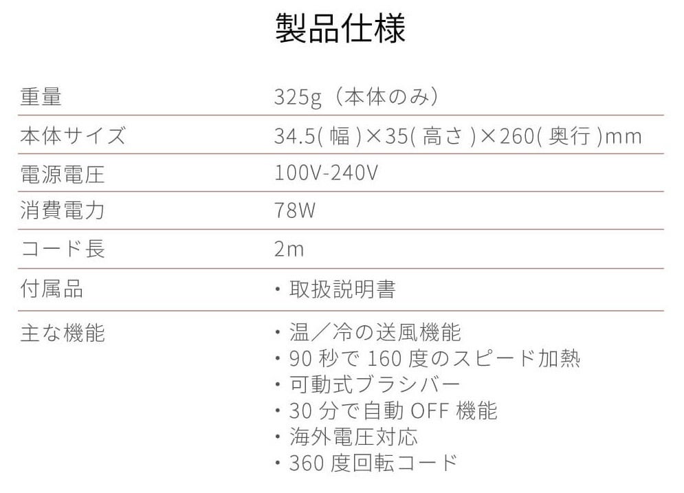 安全性だけではなく、可動するブラシバーで程よくテンションをかけストレートも短時間でサロン級。