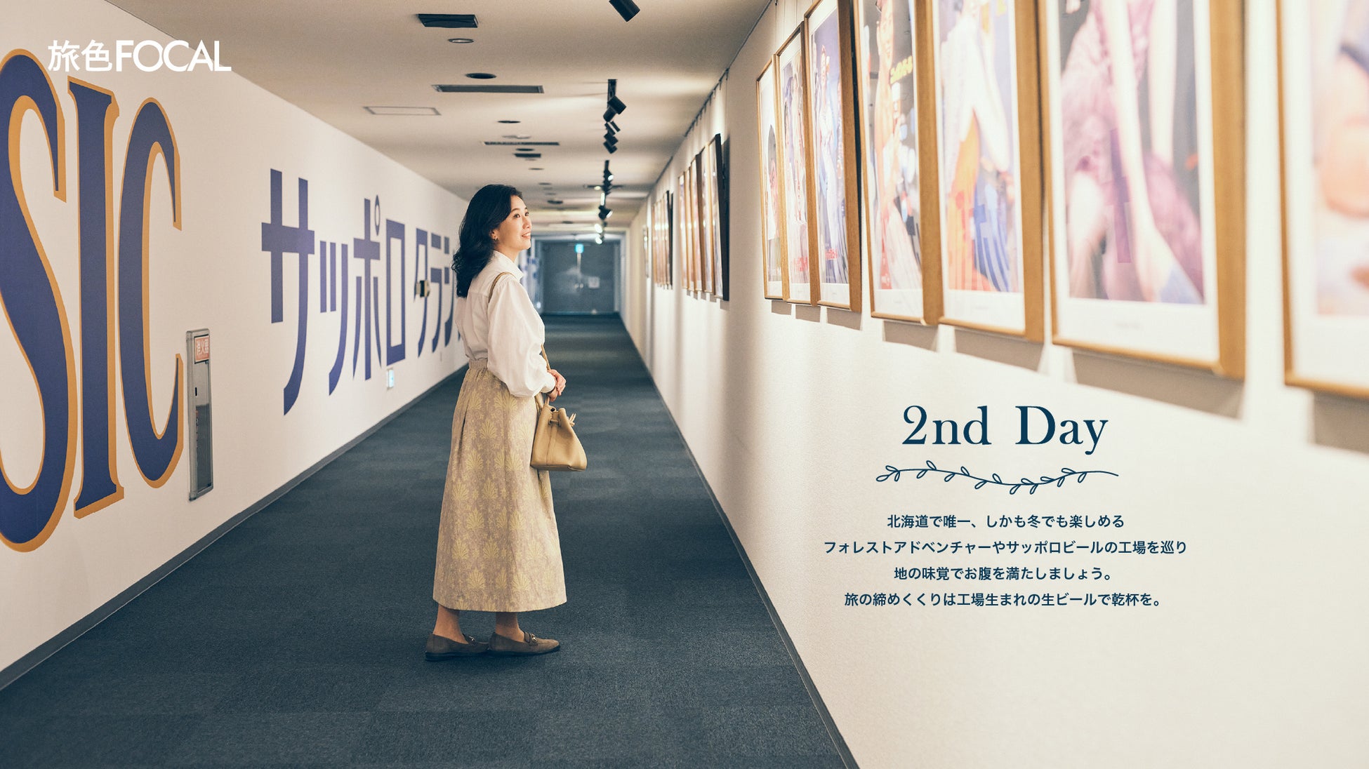 2日目に訪れたサッポロビール北海道工場では、北海道限定ビール「サッポロクラシック」の製造を見学するツアーに参加し、ラストには缶ビールをおいしく注ぐ“三度注ぎ”に挑戦!その注ぎ方に驚きつつも、「缶ビールで泡までおいしいと思ったのは初めてかも」と、いつもと違ったおいしさを実感する姿は、本誌と旅色Movieでご覧ください。