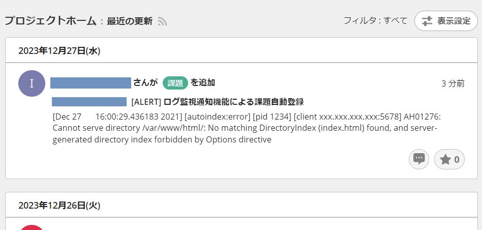 検知した異常は以下のようにBacklogおよびSlackに通知します。