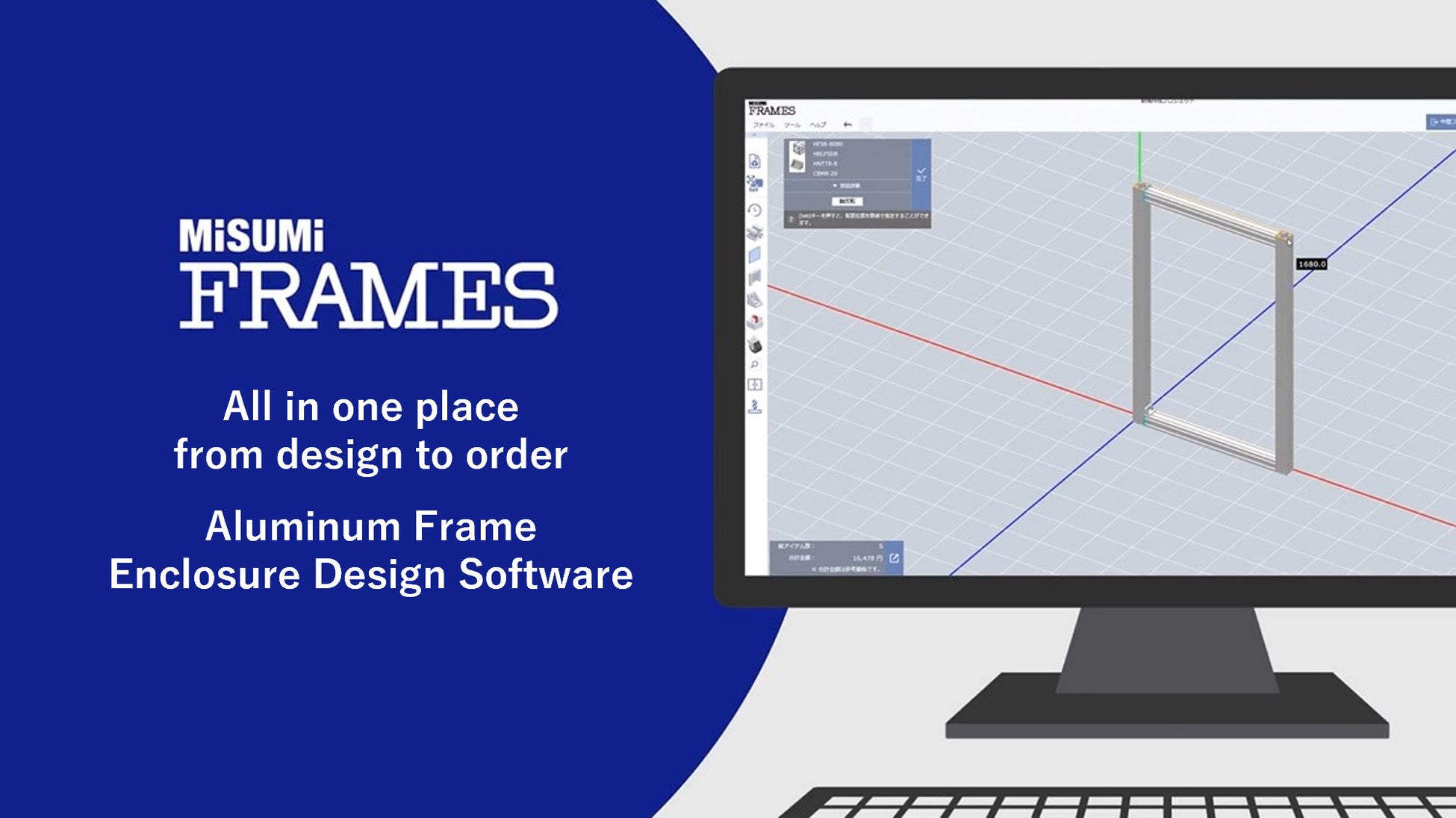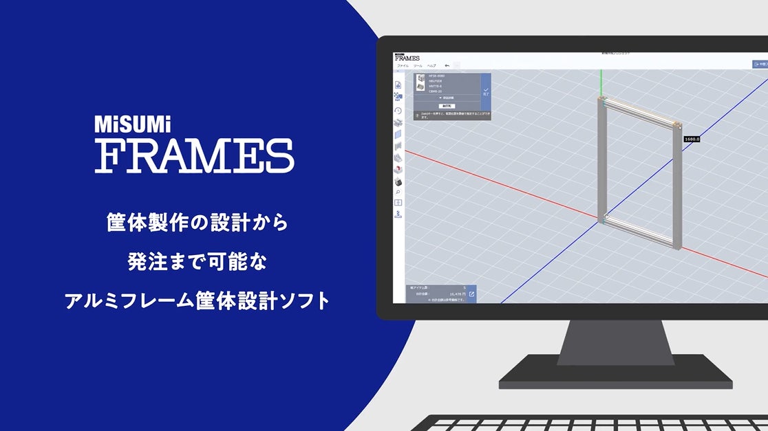 さらにミスミでは、アルミフレームを使った安全柵、架台などをお絵描き感覚かつ直感的な操作で設計ができる、アルミフレーム筐体設計ソフト 『MISUMI FRAMES(ミスミフレームズ)』を無料で提供しています。本ソフトを使用することで、手間のかかる筐体設計に要する時間を最大90%削減できます。