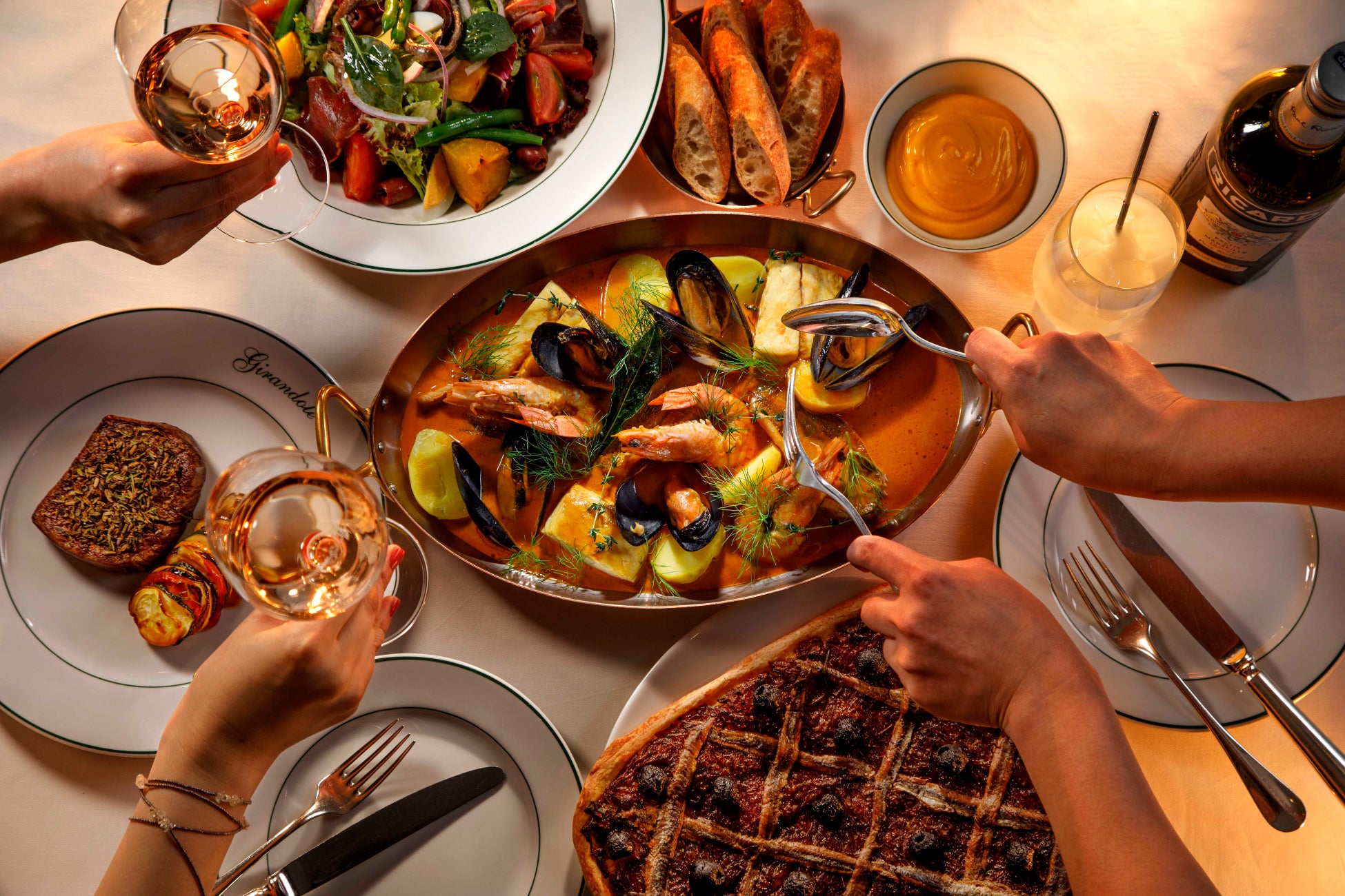 「ジランドール」では、バカンスを南仏で満喫するパリジャン&パリジェンヌの過ごし方をイメージし、料理長 堤耕次郎がプロヴァンスの伝統料理を自身のアレンジで提供いたします。魚介の旨味を存分に味わうブイヤベース、環境に配慮したサステナブルシーフードの本マグロを使ったニース風サラダ、アンチョビとオリーブの旨味が際立つピサラディエールなどをシェアするスタイルは、ご家族やご友人と集う夏の休日に最適です。