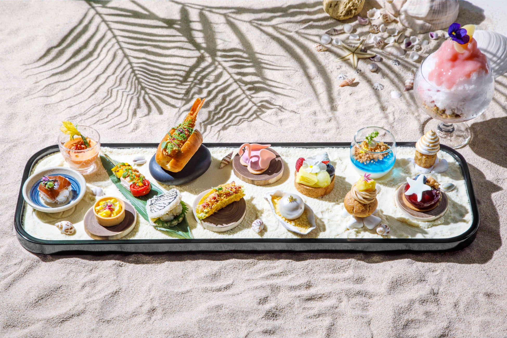 「ピーク ラウンジ」では、シーズンごとの個性的なメニューで好評の「シグネチャー アフタヌーンティー」が、夏の浜辺をテーマに登場。海の青さを映すヴェリーヌ、真珠に見立てたチョコレート、ジャスミンティーが香るパイナップルシューのほか、桃のみずみずしさが際立つかき氷も。スパイシービーフのタコスやマスタードとスイートチリを効かせた海老フライドッグなどのセイボリーもあわせ、サマーバケーションの気分を心ゆくまで楽しまれてはいかがでしょう。