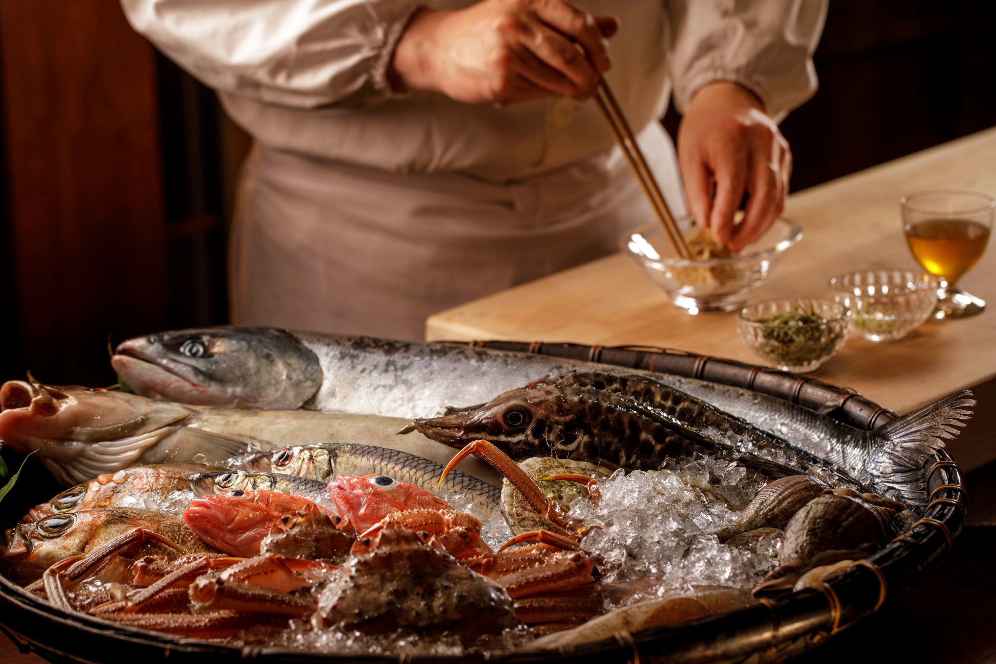 「梢」では、豊かな海の恵みに満ちた北海道、函館で水揚げされたばかりの新鮮な魚介を、料理長 吉田展大が至高の品々に昇華。新幹線の新たな物流サービスにより、市場に並んだ当日に届く帆立、鮭、鰈、烏賊などに旬の食材をあわせ、日本料理ならではのみずみずしい季節感を描き出します。涼を感じるあしらいとともに、五感で夏を味わうひとときをぜひどうぞ。