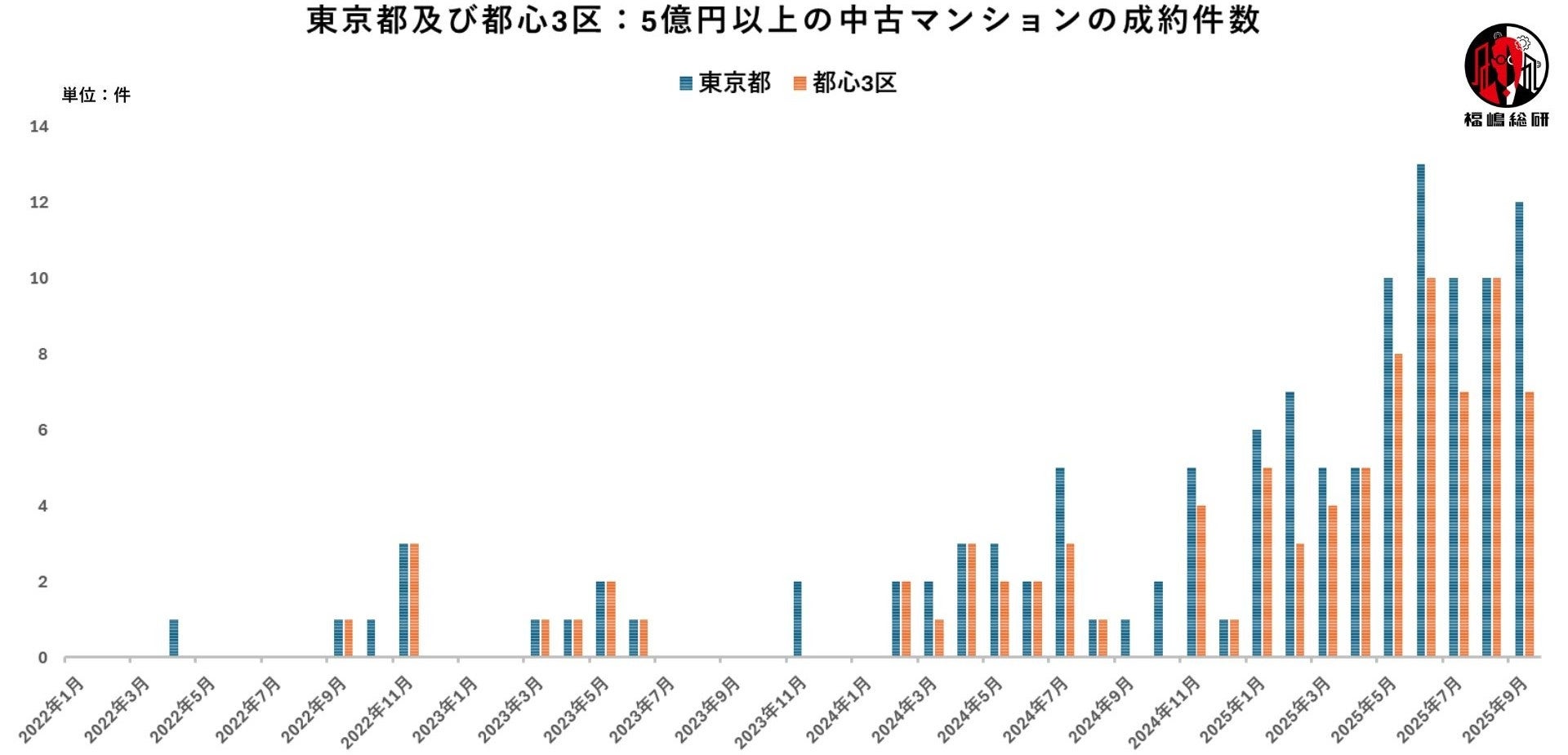グラフ4:東京都及び都心3区:5億円以上の中古マンションの成約件数