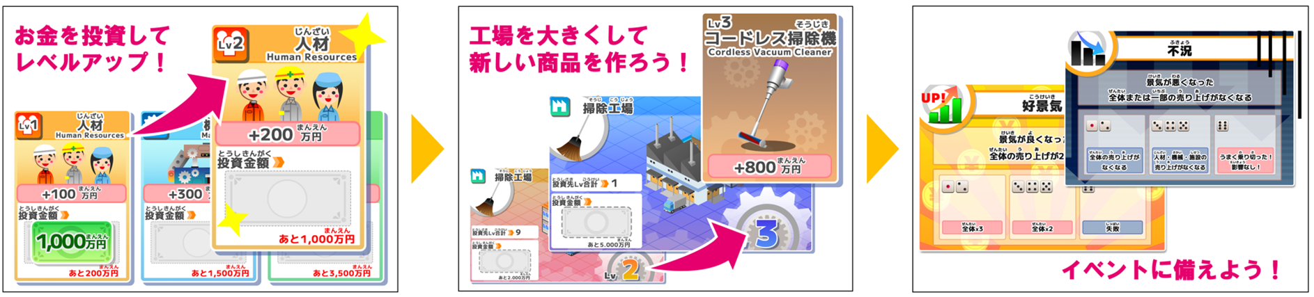 ②一定の条件をクリアすると工場そのものに投資できるようになり、工場のレベルが上がる。