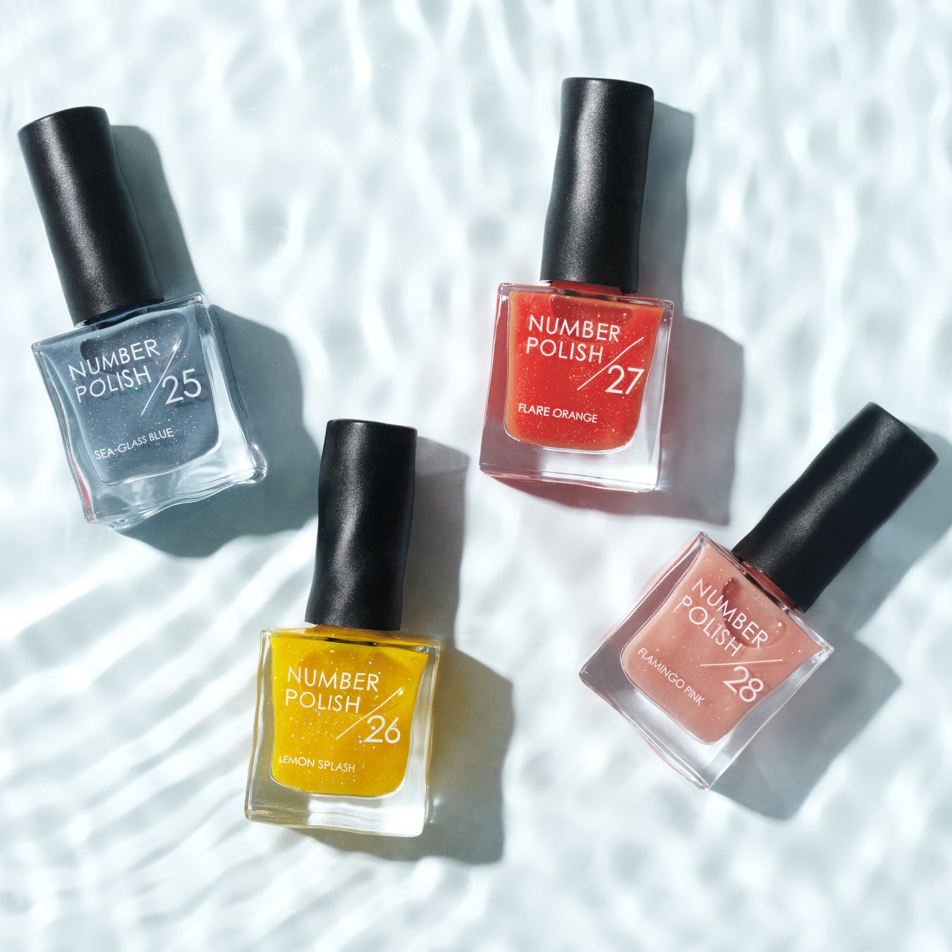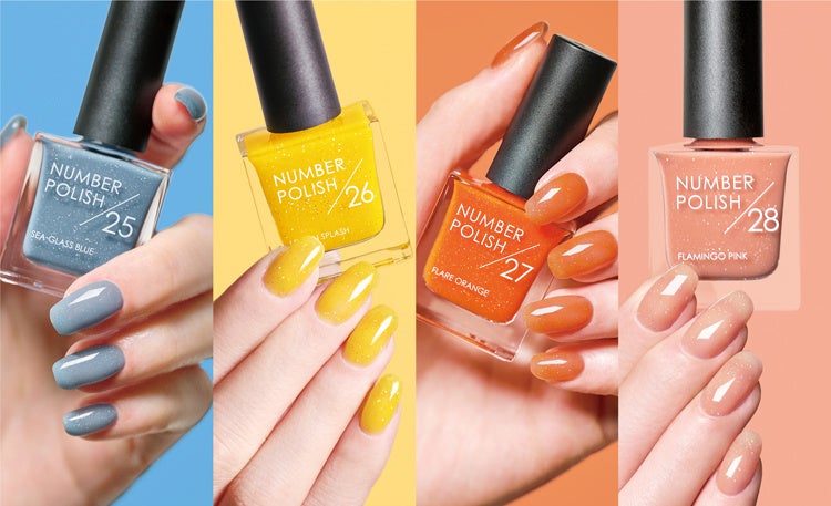ナンバーポリッシュから、春の訪れを感じさせる新色4色が登場。みずみずしくフレッシュな色合いと上品な輝きが指先を華やかに彩り、春の装いをアップデートしてくれます。自爪が少し透けるベースカラーに多彩なラメを”ひとさじ”配合した独自のバランスが特徴。透明感がありつつもムラになりにくく、サッと塗るだけで春の光に映える美しいジューシーネイルを楽しむことができます。