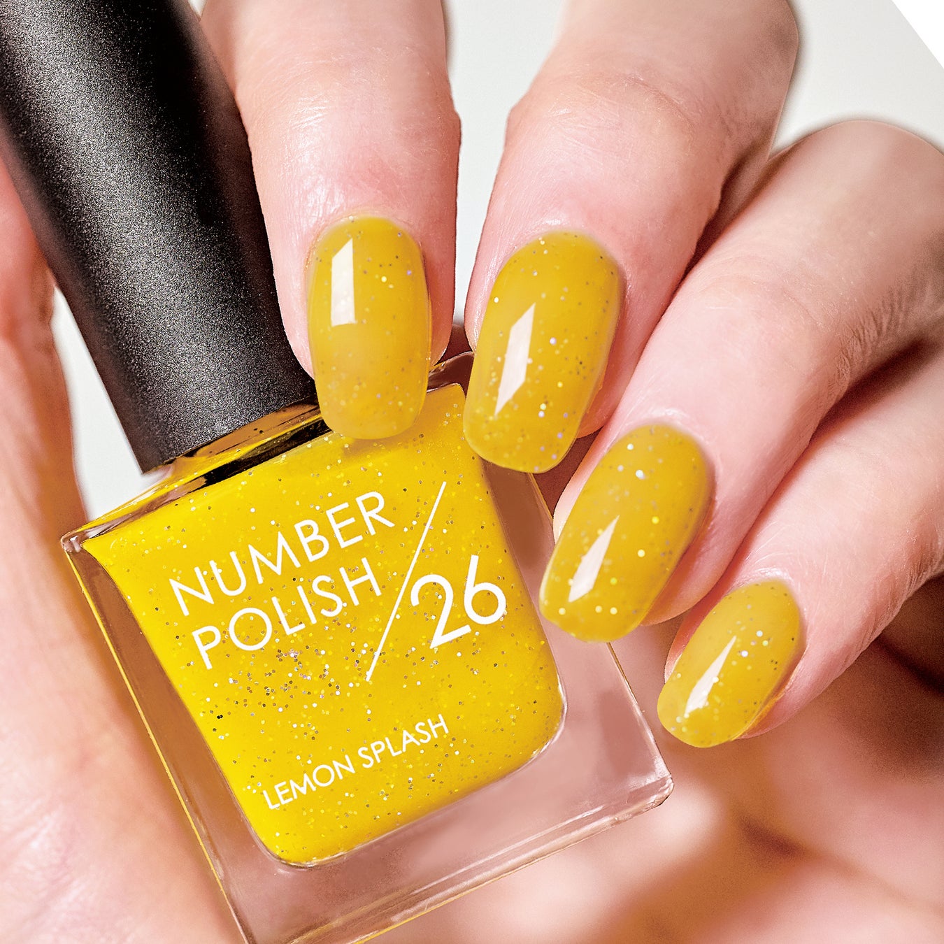 搾りたてのレモンのようなイエローに大粒の偏光ラメを配合。見るだけでパワーチャージできそうなビタミンカラー。