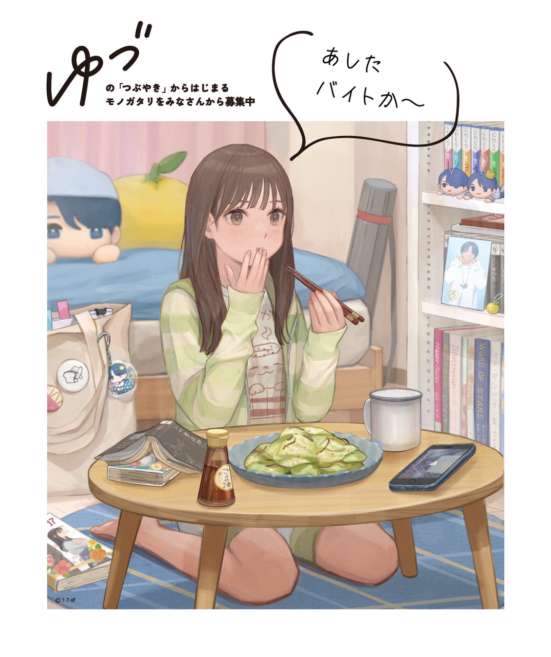 「ゆづ」のイラストには、吹き出しで一言の「つぶやき」があり、ふとした瞬間を切り取った様子となっています。まだワンシーンしか描かれていない「ゆず」の毎日を、作家の皆さんの物語で彩ってみてみてくださいね!