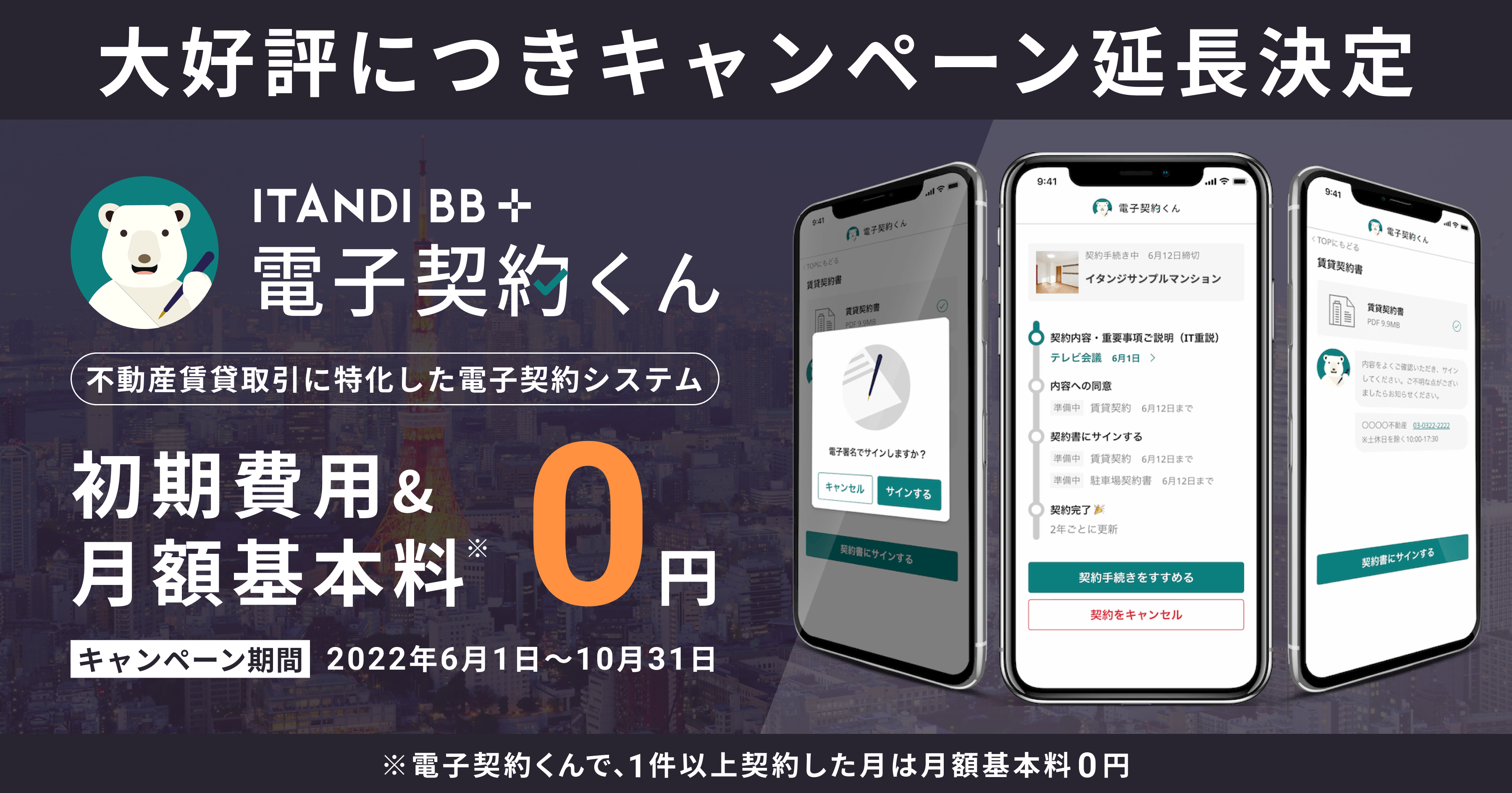 イタンジ「電子契約くん」【初期費用・月額利用料無料キャンペーン】大好評につき延長決定