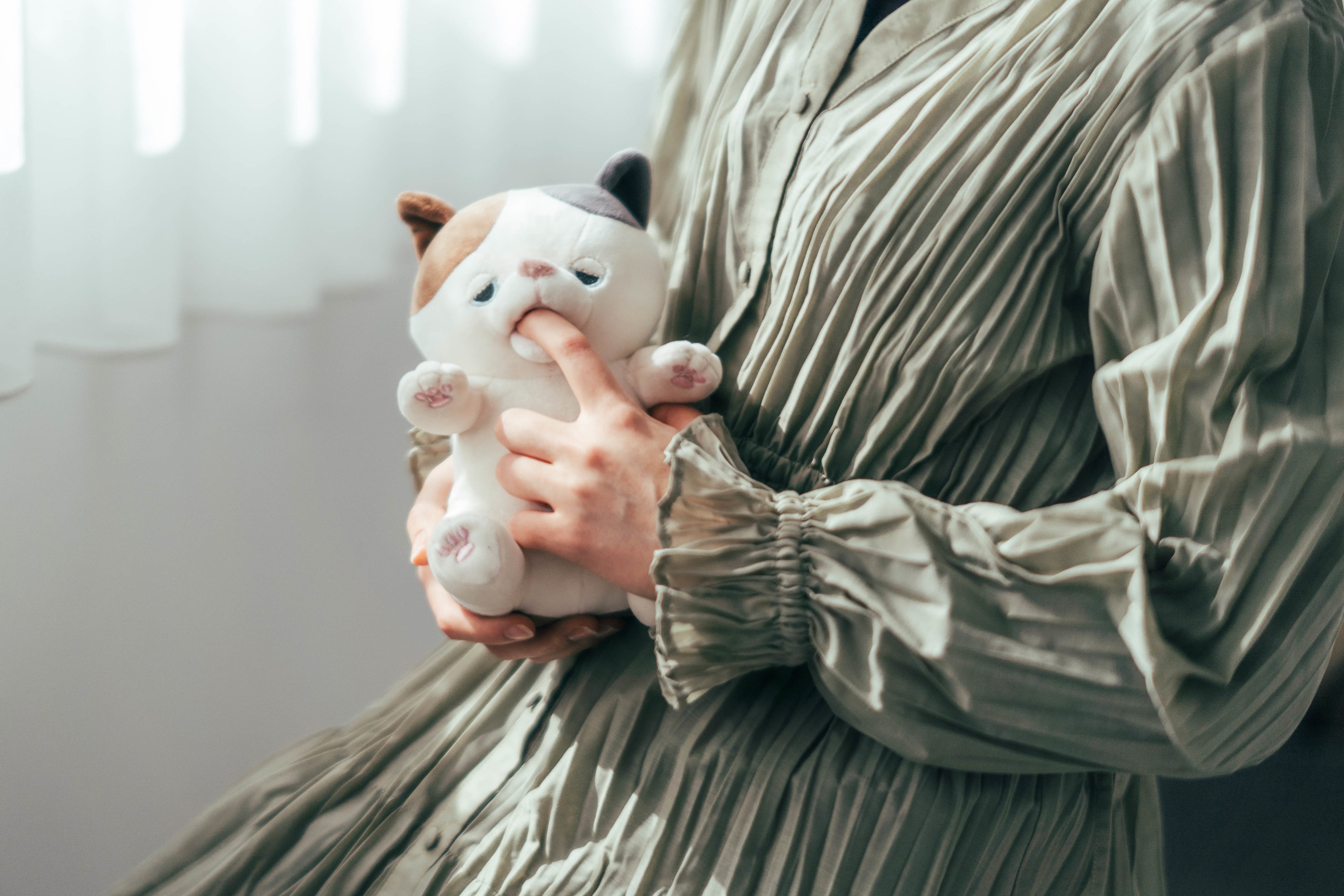 赤ちゃんや幼いペットの短い期間にしか体験できない幸せなしぐさを再現した、世界初の甘噛みロボットです。心地いいけれど、止めさせないといけない魅惑の「甘噛み」を、いつでも味わうことができます。