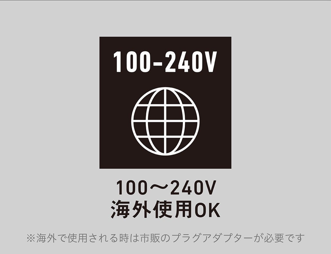 (※2)100-240V地域。海外で使用される時は市販のプラグアダプターが必要です。