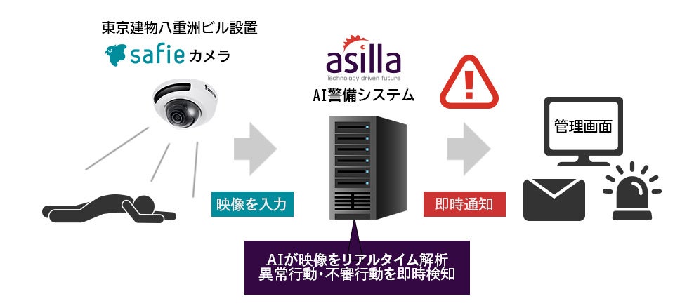 クラウド録画サービスシェアNo.1(※1)の「Safie(セーフィー)」を開発・運営するセーフィー株式会社(東京都品川区:代表取締役社長CEO 佐渡島隆平、以下「セーフィー」)と施設向けAI警備システム「アジラ」を開発する株式会社アジラ(本社:東京都町田市、代表取締役社長:木村大介、以下「アジラ」)は、企業における警備業務の高度化・効率化を目指すべく、システム連携を開始いたしました。2月24日(金)より異常な行動や不審な行動の即時検知を狙いとし、東京建物八重洲ビル(東京都中央区)にて実証実験を開始することをお知らせいたします。